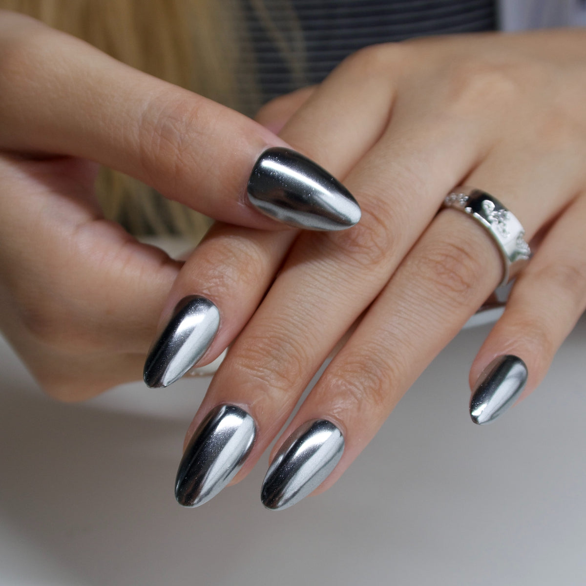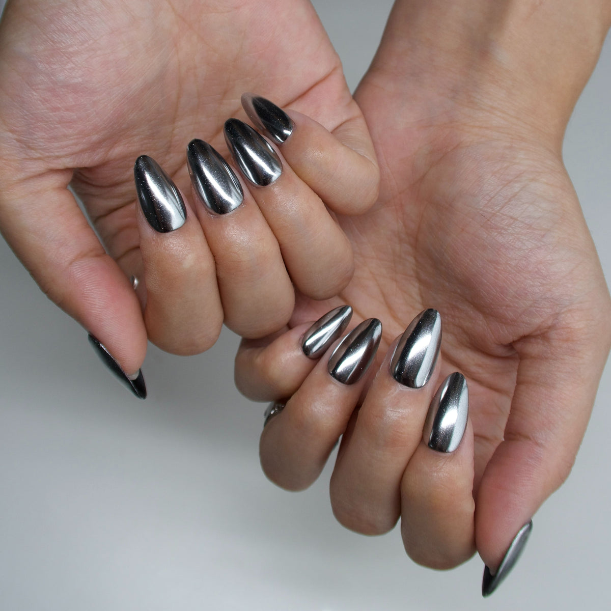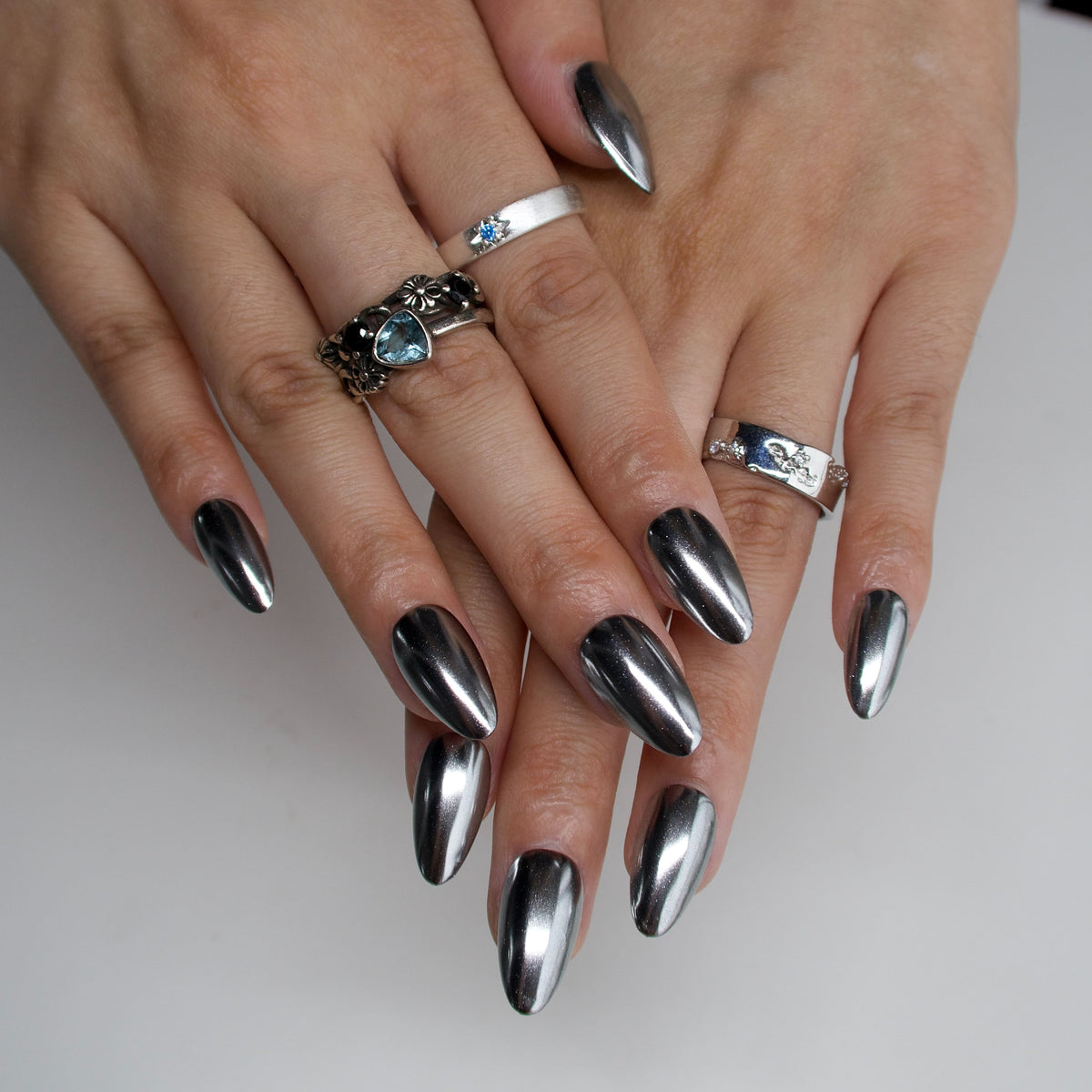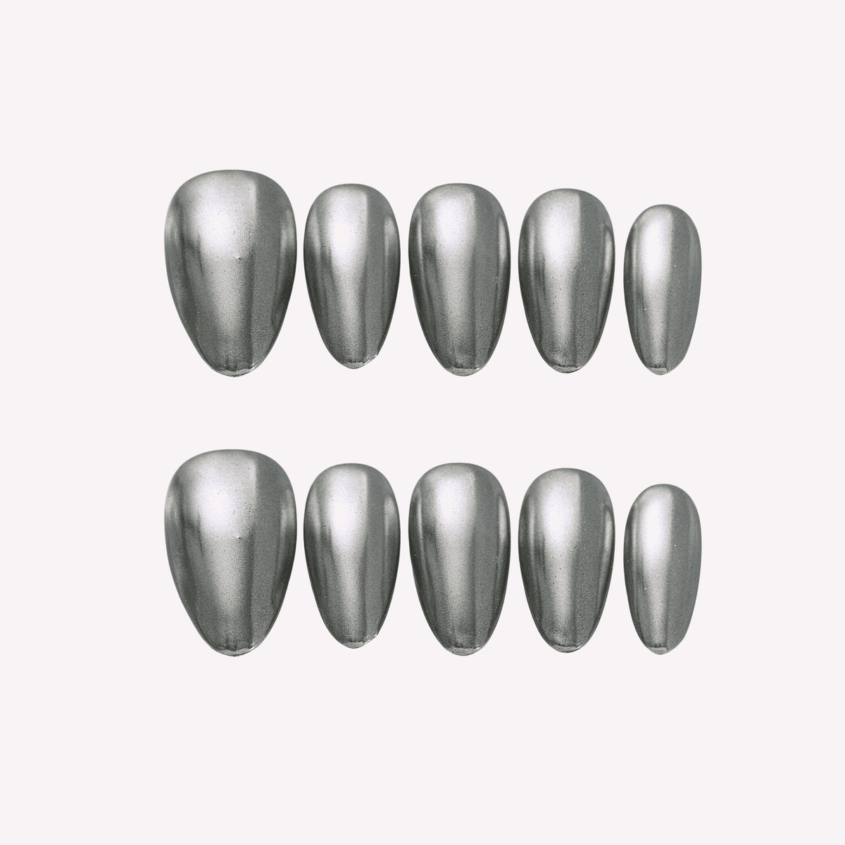 Stay by HultyNail is a minimalist yet striking press - on nails set. With a sleek, monochromatic silver finish, it exudes a sense of understated sophistication and modern elegance. The smooth, polished texture and uniform color create a clean, refined vibe, perfect for adding a touch of contemporary cool to both casual and formal looks. Simple yet impactful, it’s an ideal choice for those who appreciate sleek, timeless and bold nail styles.
