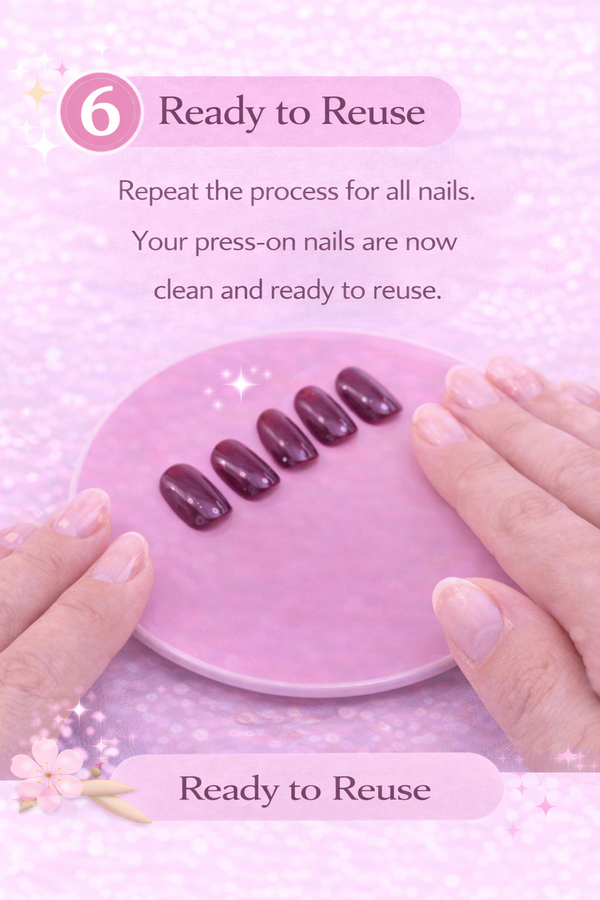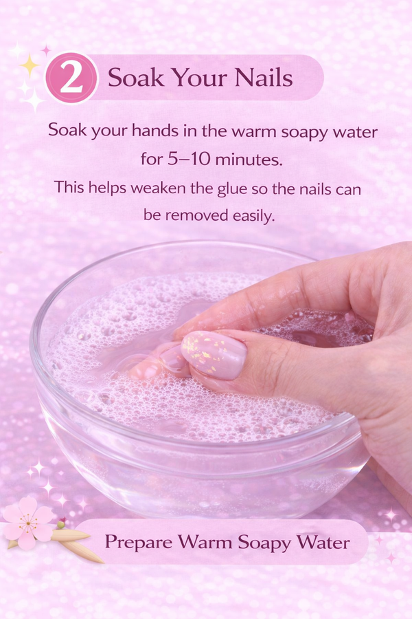 Follow these simple steps to safely remove your press-on nails without damaging your natural nails. ✨ Tip: Always soak your nails first to loosen the glue before removing them.