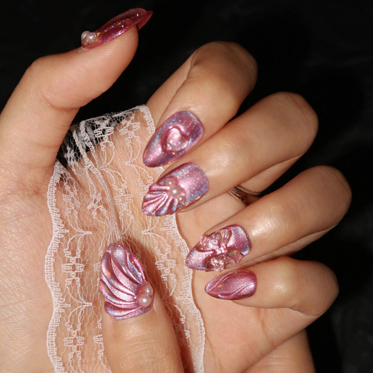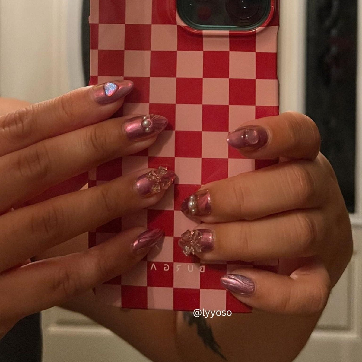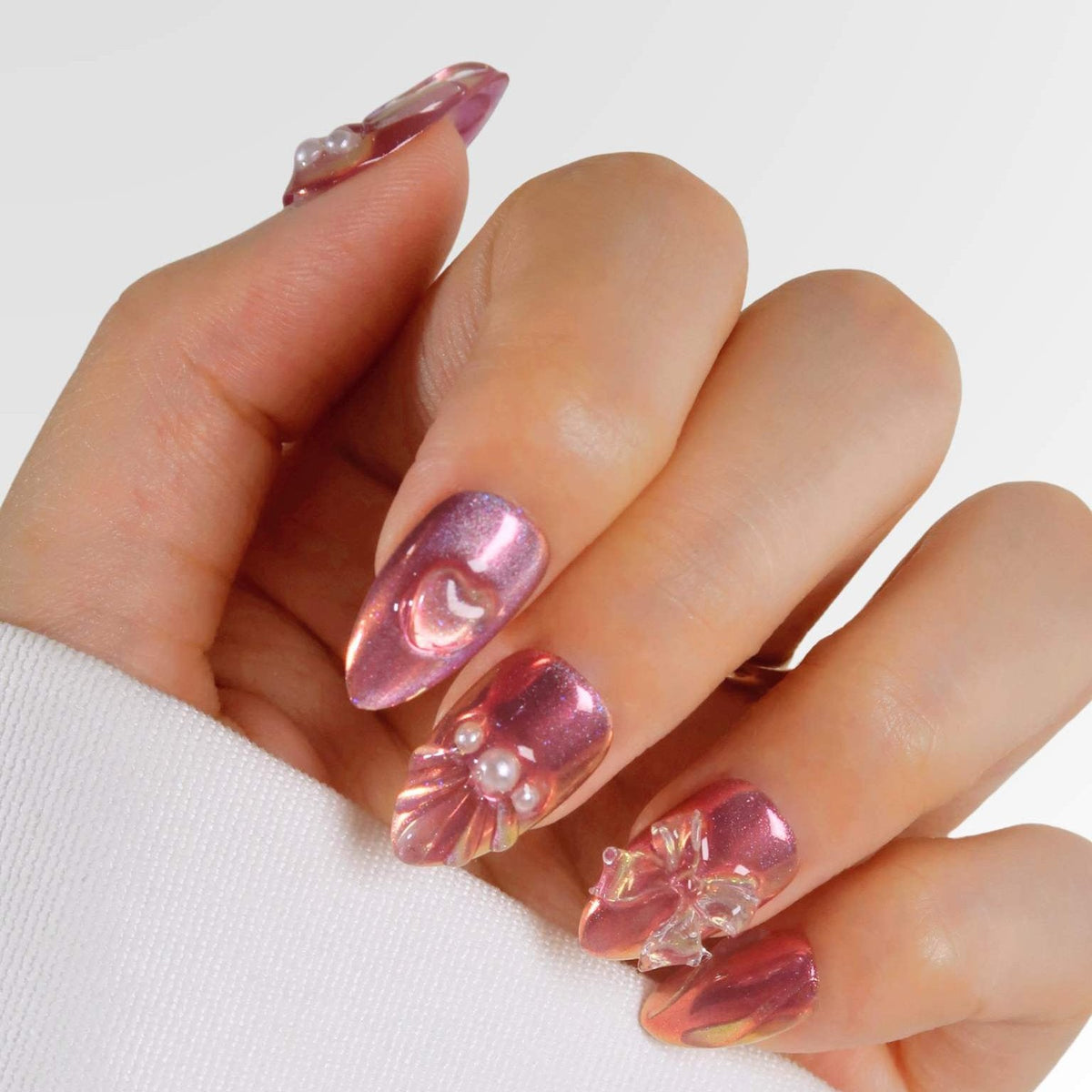 Neon Blush by Swara Nails is a radiant addition to the beloved Neon Twist set. These press-on nails fuse the allure of delicate blush hues with the electrifying vibrance of neon undertones. Each nail presents a soft gradient that whispers the transition from an innocent milky white to a playful pink blush, finished with a daring silver tip that adds a modern twist. The incorporation of shimmering orbs captures the light and reflects a spectrum of colors, reminiscent of the dynamic energy found in a neon glow. Designed for the bold at heart who still appreciate a touch of tenderness, Neon Blush offers an impeccable balance of excitement and grace, making it a versatile choice for both spirited daytime activities and enchanting evening events.